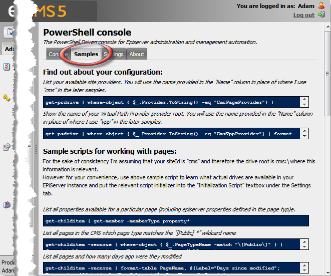 The PowerShell console for EPiServer provides you with two abstractions to work with: