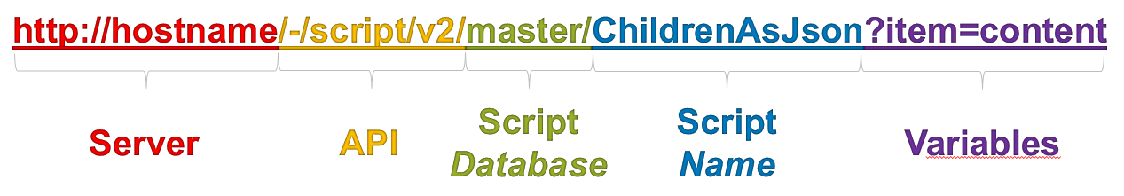 http://hostname/-/script/v2/master/ChildrenAsJson?item=content&user=admin&password=b